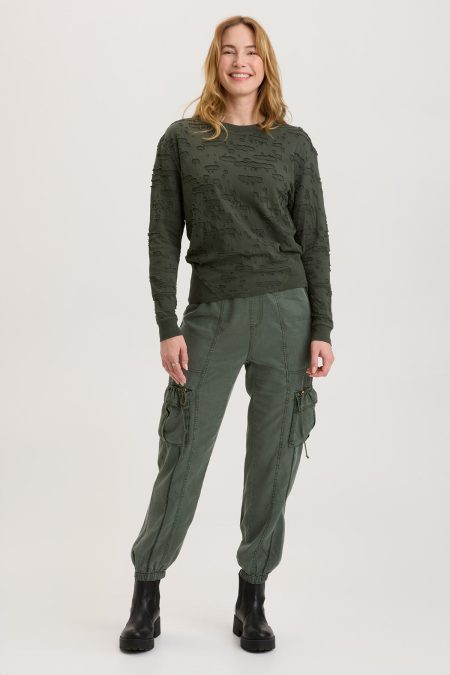 Our new ripped jersey is on full display with this long sleeve crew neck pullover. With contrast rib detailing, Pugh brings you laid back classic vibes. Ripped Jersey: 100% Cotton. 2×1 Rib Contrast: 95/5 Cotton/Spandex. Center Front: ~19.25″. Center Back: ~23″. Color Description: Dark pine green. Preshrunk. Machine washable. Imported.…