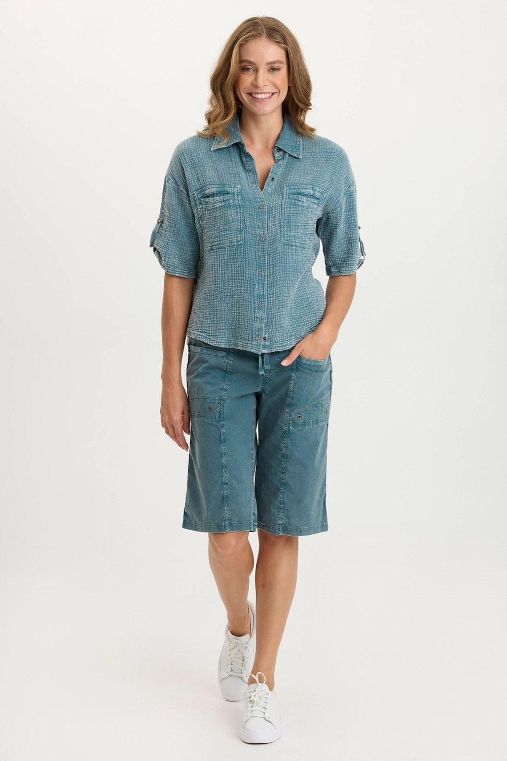 - Color Description: Deep Teal Acid Wash